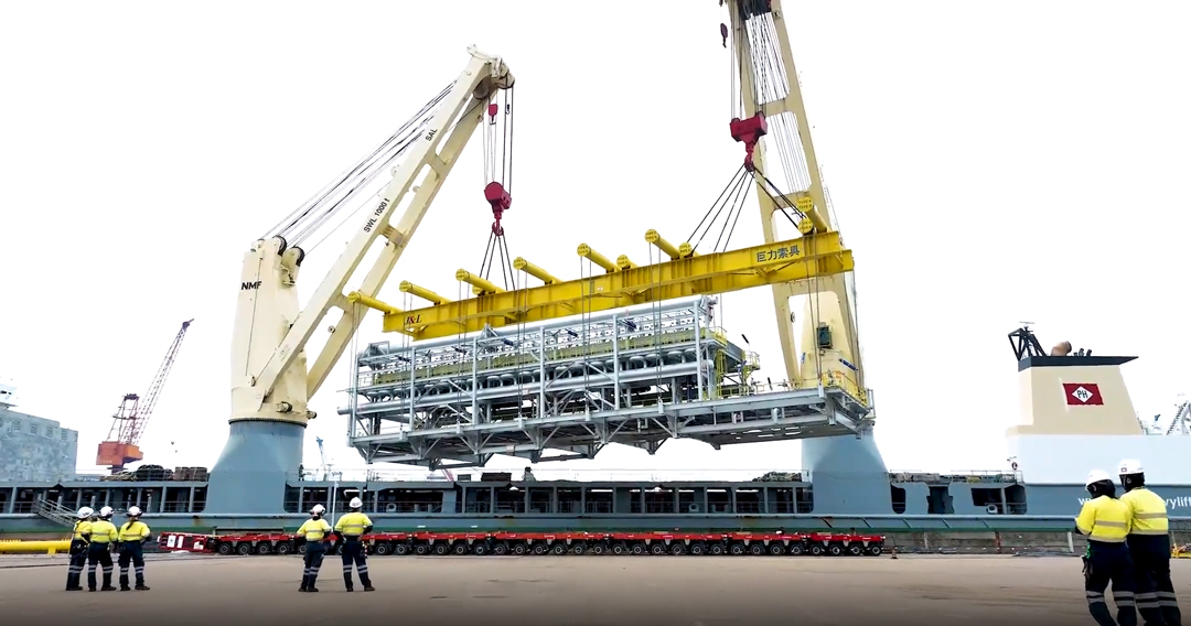 巨力索具主要負責該項目模塊的吊裝,分別提供了額定載荷為600T、300T、690T的吊框,吊裝能力為55T、75T、100T的卸扣及6種不同規(guī)格的無接頭繩圈,并提供專業(yè)吊裝方案,全程保障模塊吊裝的順利進行。