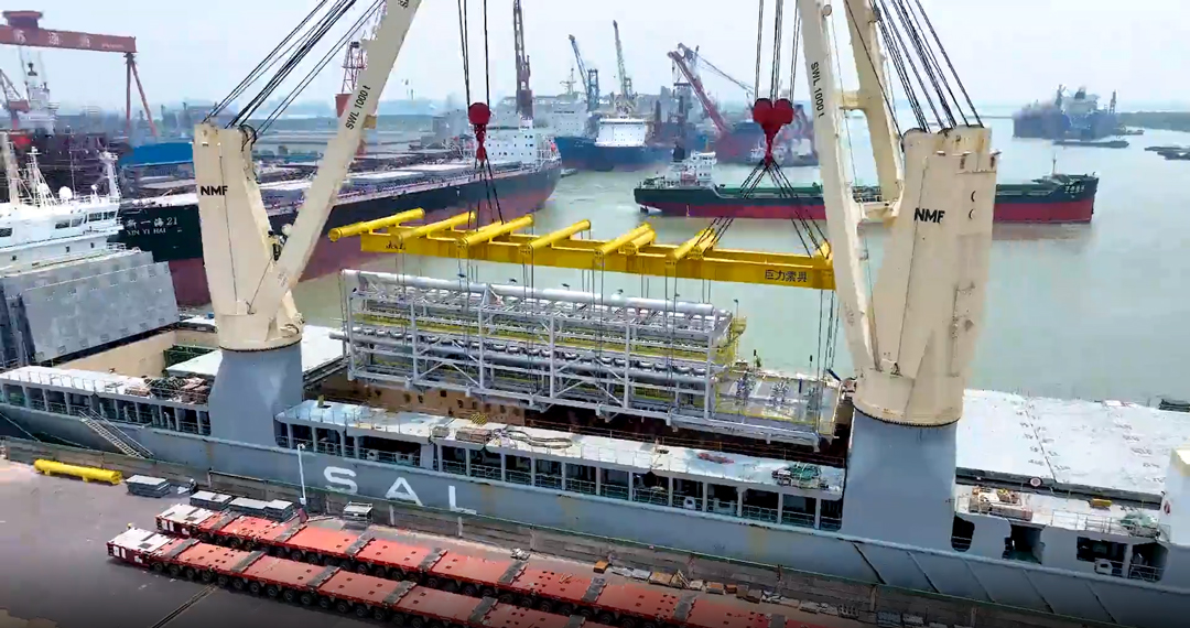 近日,“JGC巴士拉煉油擴建項目”第一批煉油模塊發(fā)往伊拉克。該項目主要是對當地巴士拉煉廠進行擴能及提高成品油品質的升級改造,在現有煉廠區(qū)域新增日處理能力3.45萬桶的催化裂化聯合裝置、日處理能力5.5萬桶的減壓蒸餾裝置和日處理能力4萬桶的柴油脫硫裝置等。